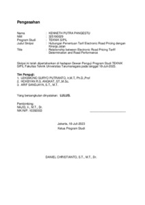 Pangestu, Kenneth Putra (2023) Hubungan penentuan tarif electronic road pricing dengan kinerja jalan. Skripsi thesis, Universitas Tarumanagara.