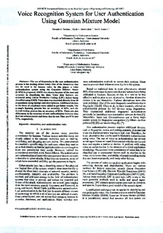Novario J. Perdana, Pertama and Dyah E. Herwindiati, Kedua and Nor H. Sarmin, Ketiga Voice Recognition System for User Authentication Using Gaussian Mixture Model. Voice Recognition System for User Authentication Using Gaussian Mixture Model.