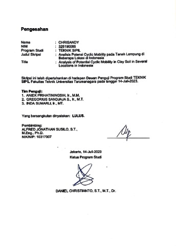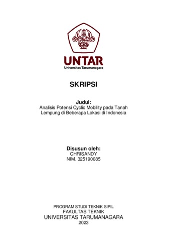 Chrisandy, Chrisandy (2023) Analisis potensi cyclic mobility pada tanah lempung di beberapa lokasi di Indonesia. Skripsi thesis, Universitas Tarumanagara.