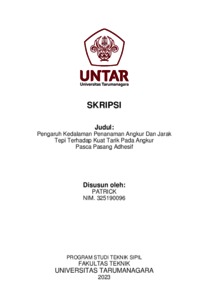 Patrick, Patrick (2023) Pengaruh kedalaman penanaman angkur dan jarak tepi terhadap kuat tarik pada angkur pasca pasang adhesif. Skripsi thesis, Universitas Tarumanagara.