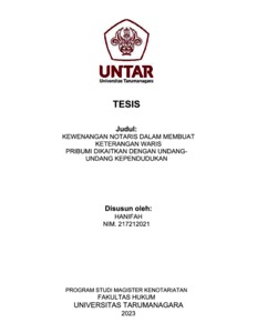Hanifah, Hanifah (2023) Kewenangan Notaris Dalam Membuat Keterangan Mewaris Pribumi Dikaitkan Dengan Undang-Undang Kependudukan. Masters thesis, Universitas Tarumanagara.