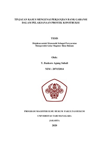 Subali, Y. Baskoro Agung (2020) Tinjauan Kasus Mengenai Perjanjian Bank Garansi Dalam Pelaksanaan Proyek Konstruksi. Masters thesis, Universitas Tarumanagara.
