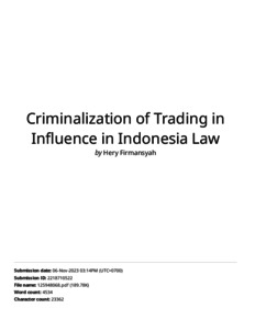 Criminalization of Trading in Influence in Indonesia Law.pdf Download (1MB) | Preview |