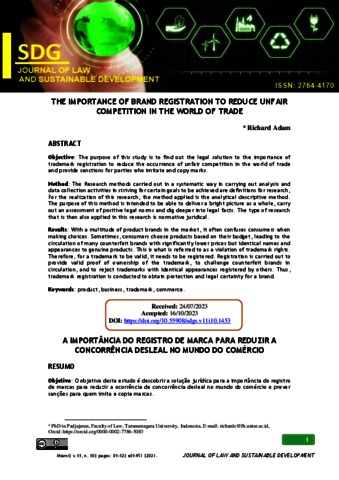 Adam, Richard (2023) He Importance Of Brand Registration To Reduce Unfair Competition In The World Of Trade. Journal Of Law And Sustainable Development, 11 (10).