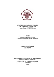 Eddy Supriyatna, Tunggal STRATEGI MANAJEMEN KREATIF DALAM BISNIS FURNITURE Studi Kasus: VIVERE Group. STRATEGI MANAJEMEN KREATIF DALAM BISNIS FURNITURE Studi Kasus: VIVERE Group.