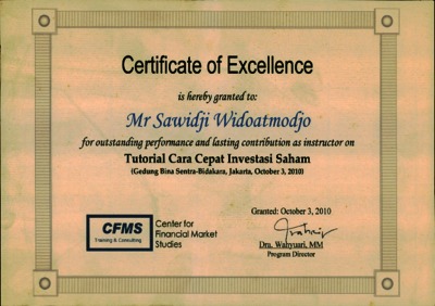 Sawidji Widoatmodjo, Seminar (2010) Instructor on Tutorial Cara Cepat Investasi Saham. Instructor on Tutorial Cara Cepat Investasi Saham.