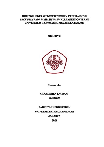 Laurani, Olsza Dhea (2020) HUBUNGAN DURASI DUDUK DENGAN KEJADIAN LOW BACK PAIN PADA MAHASISWA FAKULTAS KEDOKTERAN UNIVERSITAS TARUMANAGARA ANGKATAN. Skripsi thesis, Universitas Tarumanagara.
