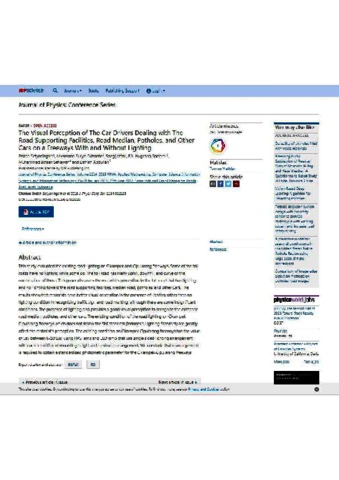 Endah Setyaningsih, Pertama The Visual Perception of The Car Drivers Dealing with The Road Supporting Facilities, Road Median, Potholes, and Other Cars on a Freeways With and Without Lighting. The Visual Perception of The Car Drivers Dealing with The Road Supporting Facilities, Road Median, Potholes, and Other Cars on a Freeways With and Without Lighting.