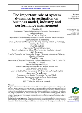 Lina Gozali, Pertama The important role of system dynamics investigation on business model, industry and performance management. The important role of system dynamics investigation on business model, industry and performance management.