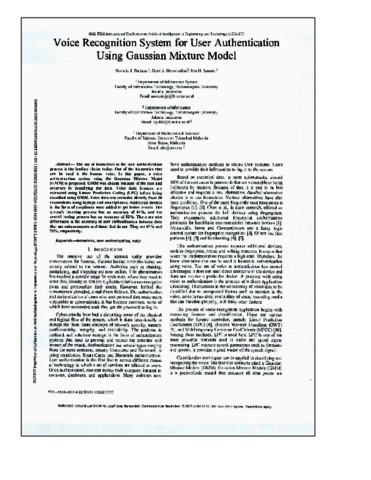 Novario J. Perdana, Pertama and Dyah E. Herwindiati, Penulis Kedua and Nor H. Sarmin, Penulis Ketiga Voice Recognition System for User Authentication Using Gaussian Mixture Model. Voice Recognition System for User Authentication Using Gaussian Mixture Model.