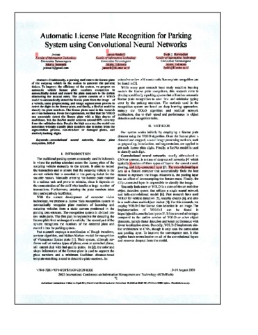 Joshua, Pertama and Jonson Hendryli, Kedua and Dyah Erny Herwindiati, Ketiga Automatic License Plate Recognition for Parking System using Convolutional Neural Networks. Automatic License Plate Recognition for Parking System using Convolutional Neural Networks.