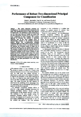 Dyah E. Herwindiati, Pertama and Sani M Isa, Kedua and Janson Hendryli, Ketiga Performance of Robust Two-dimensional Principal Component for Classification. Performance of Robust Two-dimensional Principal Component for Classification.