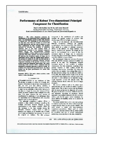 Dyah E. Herwindiati, Pertama and Sani M Isa, Kedua and Jonson Hendryli, Ketiga Performance of Robust Two-dimensional Principal Component for Classification. Performance of Robust Two-dimensional Principal Component for Classification.