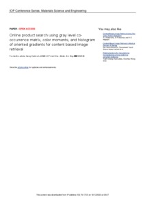 Henry Halim, Pertama and Jonson Hendryli, Kedua and Dyah E. Herwindiati, Ketiga Online Product Search Using Gray Level Co-occurrence Matrix, Color Moments, and Histogram of Oriented Gradients for Content Based Image Retrieval. Online Product Search Using Gray Level Co-occurrence Matrix, Color Moments, and Histogram of Oriented Gradients for Content Based Image Retrieval.
