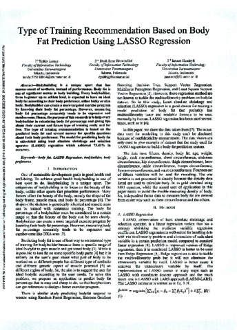 Teddy Lioner, Penulis Pertama and Dyah Erny Herwindiati, Kedua and Jonson Hendryli, Ketiga Type of Training Recommendation Based on Body Fat Prediction Using LASSO Regression. Type of Training Recommendation Based on Body Fat Prediction Using LASSO Regression.