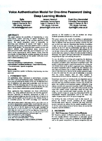 Bella, Pertama and Jonson Hendryli, Kedua and Dyah Erny Herwindiati, Ketiga Voice Authentication Model for One-time Password Using Deep Learning Models. Voice Authentication Model for One-time Password Using Deep Learning Models.