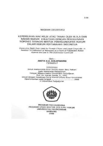 Kolopaking, Anita D.A. (2008) Kepemilikan Hak Milik Atas Tanah Oleh W.N.A dan Badan Hukum Dikaitkan Dengan Penggunaan Nominee Sebagai Bentuk Penyeludupan Hukum dalam Hukum Pertahanan Indonesia. Doctoral thesis, Universitas Padjajaran.