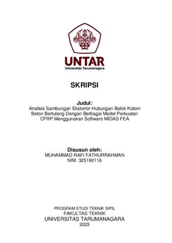 Fathurrahman, Muhammad Rafi (2023) Analisis sambungan eksterior hubungan balok kolom beton bertulang dengan berbagai model perkuatan CFRP menggunakan software MIDAS FEA. Skripsi thesis, Universitas Tarumanagara.