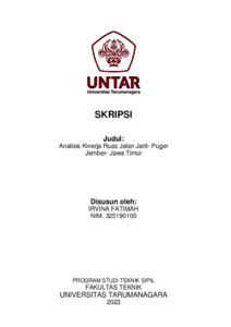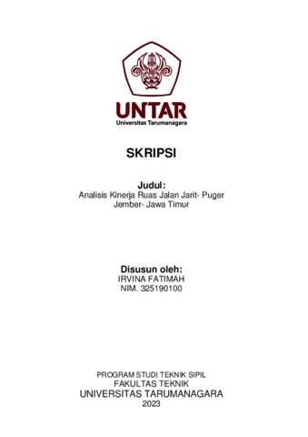 Fatimah, Irvina (2023) Analisis kinerja ruas jalan jarit-puger Jember-Jawa Timur. Skripsi thesis, Universitas Tarumanagara.