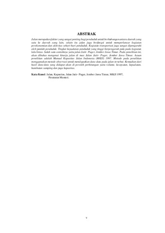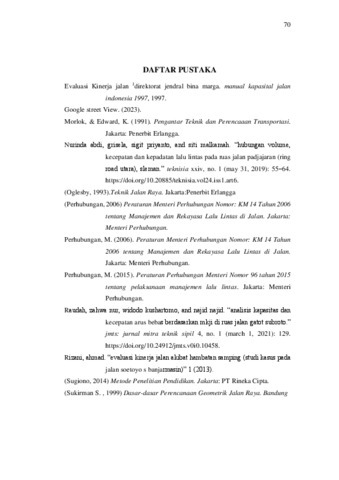 akan dibahas mengenai kinerja jalan di ruas Jalan Jatir- Puger, Jember Jawa Timur. Acuan penelitian adalah Manual Kapasitas Jalan Indonesia (MKJI) 1997. Metode pada penelitian menggunakan metode observasi untuk mendapatkan data-data pada jalan tersebut. Kemudian dari hasil data-data yang didapat akan di peroleh perhitungan yaitu volume, kecepatan, kepadatan, hambatan samping dan juga kapasitas. Kata Kunci: Jalan, Kapasitas, Jalan Jatir- Puger, Jember Jawa Timur, MKJI 1997, Peraturan Menteri.