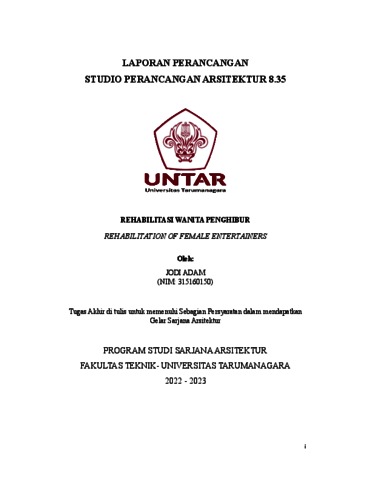 Adam, Jodi (2023) Rumah rehabilitas tuna susila. Skripsi thesis, Universitas Tarumanagara.