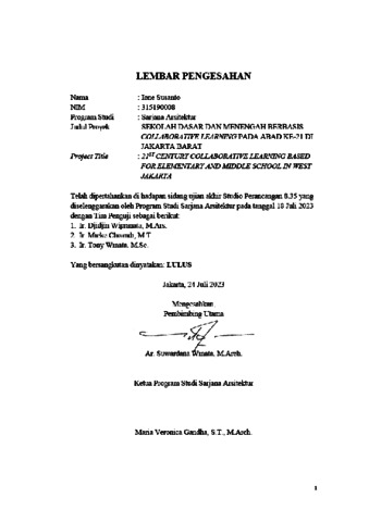 Susanto, Ione (2023) Sekolah dasar dan menengah berbasis collaborative learning pada abad ke-21 di Jakarta Barat. Skripsi thesis, Universitas Tarumanagara.