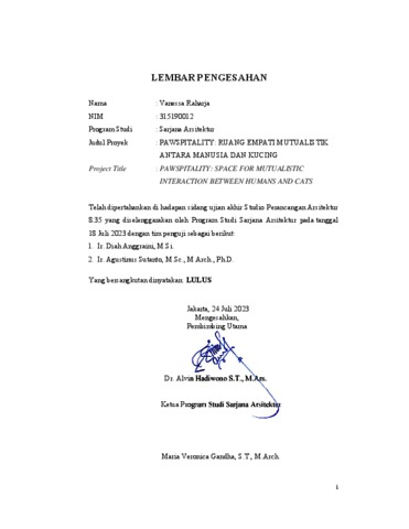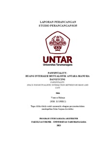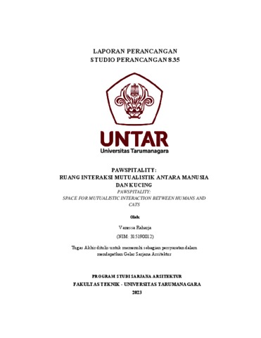 Raharja, Vanessa (2023) Pawspitality: ruang interaksi mutualistik antara manusia dan kucing. Skripsi thesis, Universitas Tarumanagara.
