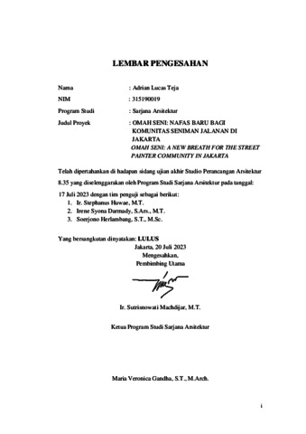 Teja, Adrian Lucas (2023) Omah seni: nafas baru bagi komunitas seniman jalanan di Jakarta. Skripsi thesis, Universitas Tarumanagara.