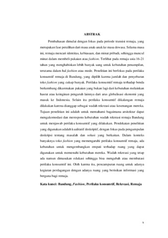 Pembahasan dimulai dengan fokus pada periode transisi remaja, yang merupakan fase peralihan dari masa anak-anak ke masa dewasa. Selama masa ini, remaja mencari identitas, kebiasaan, dan minat pribadi, sehingga muncul minat dalam membeli pakaian atau fashion. Terlihat pada remaja usia 16-21 tahun yang menghabiskan lebih banyak uang untuk kebutuhan penampilan, terutama dalam hal fashion atau mode. Penelitian ini berfokus pada perilaku konsumtif remaja di Bandung, yang dipilih karena jumlah dan penyebaran toko fashion yang cukup banyak. Perilaku konsumtif remaja terhadap benda berkembang dikarenakan pakaian yang bukan lagi dari kebutuhan melainkan hasrat atau keinginan pengaruh lainnya dari arus globalisasi ekonomi yang masuk ke Indonesia. Selain itu perilaku konsumtif dikalangan remaja dilakukan karena dianggap sebagai wadah rekreasi atau kesenangan mereka. Tujuan penelitian ini adalah untuk memahami bagaimana arsitektur dapat mengakomodasi dan merespons kebutuhan wadah rekreasi remaja Bandung untuk menjawab perilaku konsumtif yang dilakukan. Pendekatan penelitian yang digunakan adalah kualitatif deskriptif, dengan fokus pada pengumpulan deskripsi tentang masalah dan solusi yang berkaitan. Dalam konteks banyaknya toko fashion yang memengaruhi perilaku konsumtif remaja, ada kebutuhan untuk mengembangkan empati terhadap ruang yang dapat digunakan untuk memenuhi kebutuhan mereka. Wadah rekreasi yang tetap ada namun dimasukan edukasi sehingga bisa mengubah atau membatasi perilaku konsumtif ini. Oleh karena itu, pencampuran ruang untuk adanya kegiatan perdagangan dengan adanya ruang yang berisikan informasi yang berguna bagi remaja. Kata kunci: Bandung, Fashion, Perilaku konsumtif, Rekreasi, Remaja