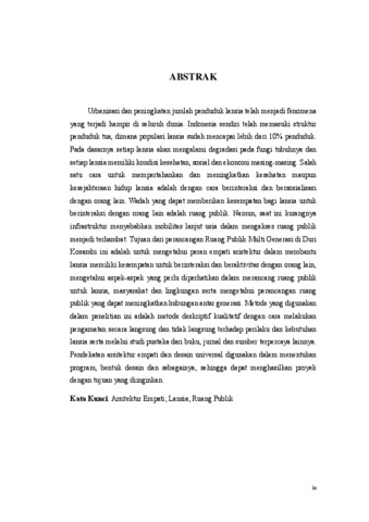 Kata Kunci: Arsitektur Empati; Lansia; Ruang Publik