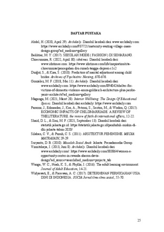 Pernikahan dini adalah bentuk pernikahan yang terjadi saat anak-anak menikah sebelum mencapai usia 18 tahun. Di Indonesia, kasus pernikahan dini cukup tinggi dan menempati peringkat ke-7 tertinggi di dunia. Pernikahan dini memiliki dampak negatif yang merugikan terutama bagi perempuan, menghambat perkembangan mereka. Selain peran pemerintah dan pihak terkait lainnya dalam mengatasi masalah ini, arsitektur juga memiliki peran penting. Oleh karena itu, dirancanglah sebuah bangunan untuk memfasilitasi tempat edukasi bagi ibu muda yang menikah dini dan berasal dari kalangan menengah ke bawah. Bangunan ini bertujuan untuk menjadi wadah yang menyediakan pendidikan, komunitas, dan pengembangan diri bagi ibu muda tersebut. Tujuan perancangan ini adalah menciptakan sebuah bangunan yang dapat memenuhi kebutuhan para ibu muda, terutama mereka yang berada dalam kategori ekonomi menengah ke bawah di kota Jakarta. Penelitian ini menggunakan metode kuantitatif-kualitatif dengan mengumpulkan data melalui wawancara dengan pihak terkait dan melakukan survei lokasi untuk memperoleh data lapangan. Studi literatur dari berbagai sumber seperti buku, jurnal, skripsi, dan bahan bacaan lainnya digunakan sebagai panduan dalam merencanakan penyelesaian masalah. Hasil dari perancangan ini akhirnya menghasilkan sebuah objek yang bertujuan untuk mengatasi dampak pernikahan dini terhadap ibu muda yang menikah dini dan berasal dari kalangan menengah ke bawah. Metode perancangan yang didasarkan pada arsitektur empati dengan konsep Feminism Architecture menjadi solusi dalam menghadapi salah satu isu global ini. Kata kunci: ibu muda; pernikahan dini; edukasi; dan pengembangan diri