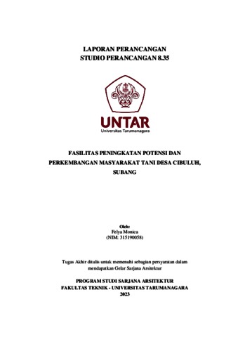 Monica, Felya (2023) Fasilitas peningkatan potensi dan perkembangan masyarakat tani desa Cibuluh, Subang. Skripsi thesis, Universitas Tarumanagara.