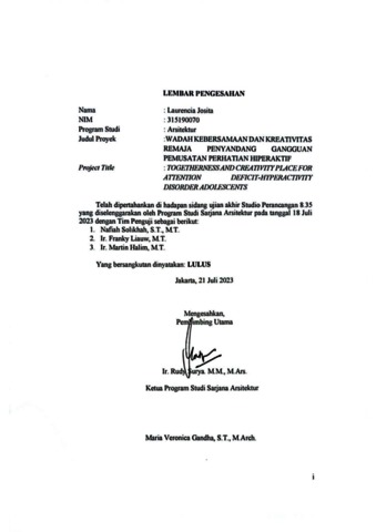 Josita, Laurencia (2023) Wadah kebersamaan dan kreativitas remaja penyandang gangguan pemusatan perhatian hiperaktif. Skripsi thesis, Universitas Tarumanagara.