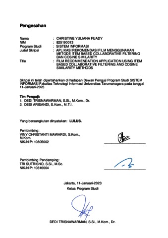 Fuady, Christine Yuliana (2023) Aplikasi rekomendasi film menggunakan metode item based collaborative filtering dan cosine similarity. Skripsi thesis, Universitas Tarumanagara.