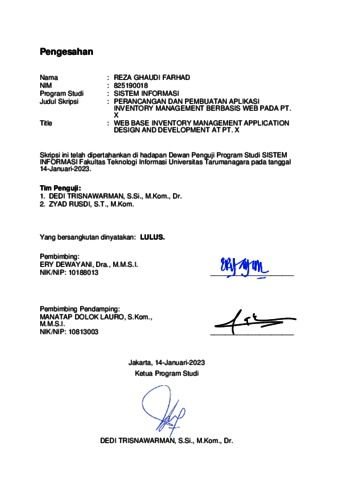 Farhad, Reza Ghaudi (2023) Perancangan dan pembuatan aplikasi inventory management berbasis web pada PT. X. Skripsi thesis, Universitas Tarumanagara.