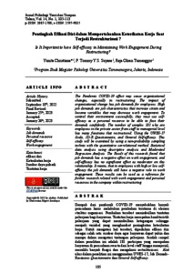 Yunita Christiana, Pertama and P. Tommy Y.S. Suyasa, Kedua and Raja Oloan Tuman, Ketiga Pentingkah Efikasi Diri dalam Mempertahankan Keterikatan Kerja Saat Terjadi Restrukturisasi? Pentingkah Efikasi Diri dalam Mempertahankan Keterikatan Kerja Saat Terjadi Restrukturisasi?.