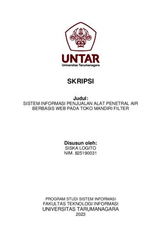 Logito, Siska (2023) Sistem informasi penjualan alat penetral air berbasis web pada toko mandiri filter. Skripsi thesis, Universitas Tarumanagara.
