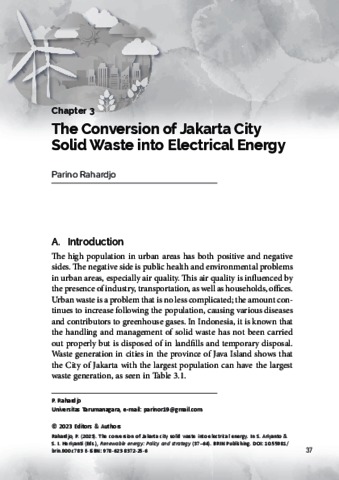 Rahardjo, Parino The Conversion of Jakarta City Solid Waste into Electrical Energy. Renewable Energy: Policy and Strategy.