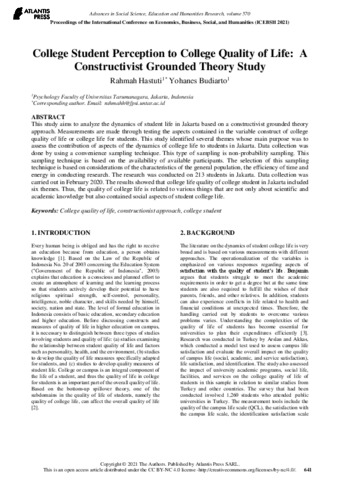 Rahmah Hastuti, Pertama and Yohanes Budiarto, Kedua College Student Perception to College Quality of Life: A Constructivist Grounded Theory Study. College Student Perception to College Quality of Life: A Constructivist Grounded Theory Study.