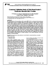 P Tommy Y S Suyasa, Pertama and Indah Setiawan, Kedua and Zamralita, Ketiga and Wasino, Keempat and Nathanael Osbert Auda, Kelima Construct Validation Study of Web-Based Kuder’s Preference Records 2011 Version. Construct Validation Study of Web-Based Kuder’s Preference Records 2011 Version.