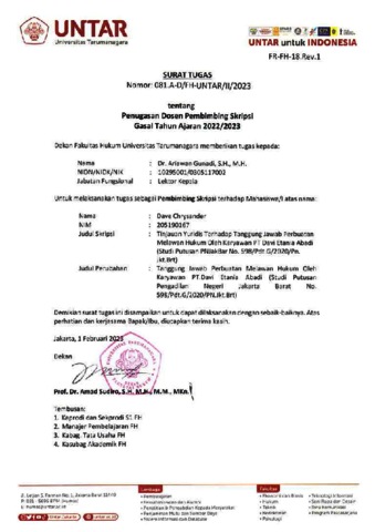 Gunadi, Ariawan Surat Tugas: Penugasan Dosen Pembimbing. Universitas Tarumanagara.