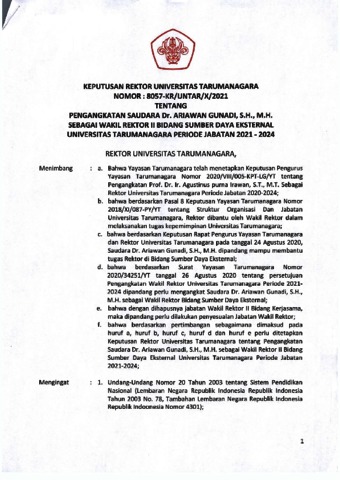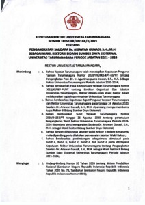 Purna Irawan, Agustinus Keputusan Rektor Universitas Tarumanagara Nomor 8057-KR/UNTAR/X/2021. Universitas Tarumanagara.