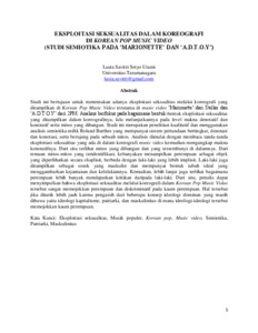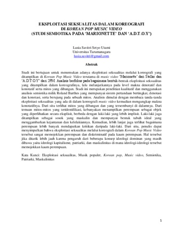 Setyo Utami, Lusia Savitri EKSPLOITASI SEKSUALITAS DALAM KOREOGRAFI DI KOREAN POP MUSIC VIDEO (STUDI SEMIOTIKA PADA ‘MARIONETTE’ DAN ‘A.D.T.O.Y’). Karya Ilmiah Dosen. pp. 1-25.