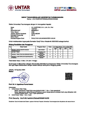 Martono, Martono Surat Tugas Mengajar Universitas Tarumanagara Nomor: 215-R/UNTAR/PENGAJARAN/VIII/2022. Universitas Tarumanagara.