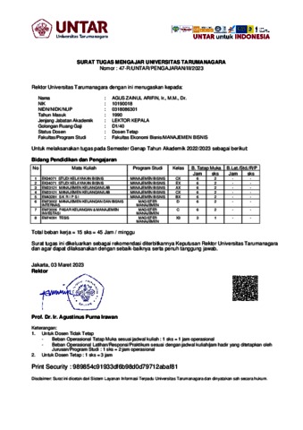 Agus Zainul Arifin, skp (2023) SURAT TUGAS MENGAJAR REKTOR 2023-1. SURAT TUGAS MENGAJAR REKTOR 2023-1.