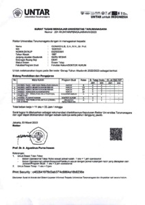Lie, Gunardi Surat Tugas Mengajar Universitas Tarumanagara. Universitas Tarumanagara.