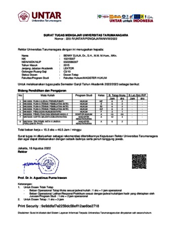 Djaja, Benny Surat Tugas Mengajar Universitas Tarumanagara. Universitas Tarumanagara.