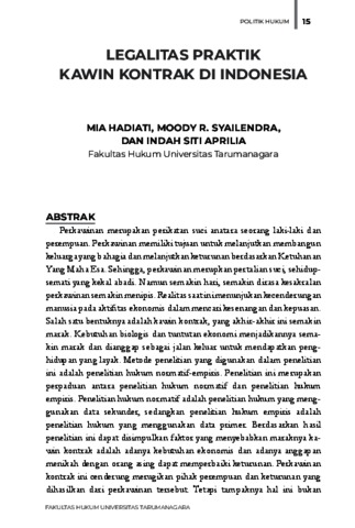 Hadiati, Mia and Syailendra, Moody R. and Aprilia, Indah Siti Legalitas Praktik Kawin Kontrak Di Indonesia. Fakultas Hukum Universitas Tarumanagara.