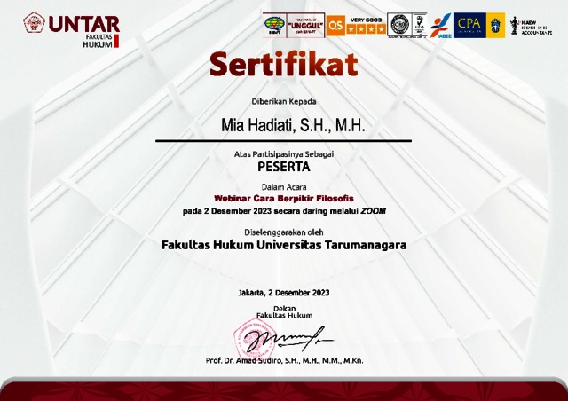 Hadiati, Mia Sertifikat. Universitas Tarumanagara.
