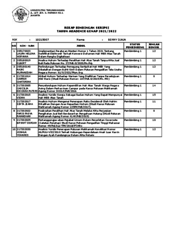 Djaja, Benny Rekap Bimbingan Tugas Akhir. Universitas Tarumanagara.